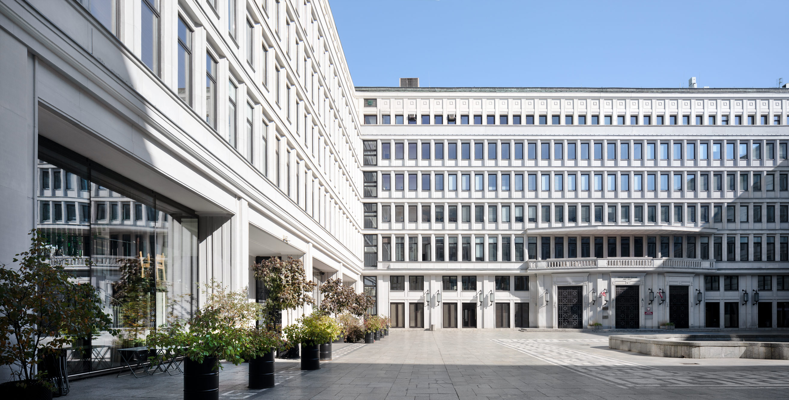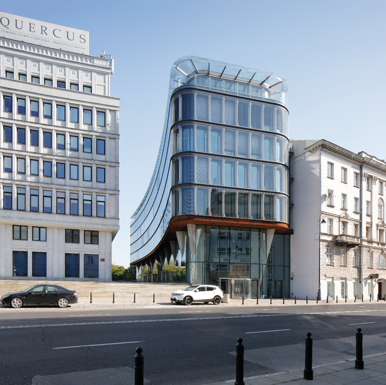 At the crossing of Nowy Swiatand Aleje Jerozolimskie you will find Nowy Swiat 2.0 (2015) and Bialy Dom (1952). Warsaw.